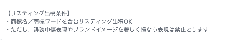 ですが、案件の中にはそのような「自社の商標でキーワードを出しても良いですよ」という案件があります。